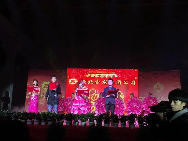 2月3日晚上6點,經(jīng)過一個月的籌備,湖北金龍集團公司迎新春文藝晚會隆重拉開帷幕,公司所有職工及家屬共同享受了這場視覺盛宴。晚會節(jié)目都由公司員工結合公司產(chǎn)品和實際情況自編自演的,其中有用公司產(chǎn)品做成服裝的T臺秀、小品、三句半、相聲、書畫表演、二胡、舞蹈等近三十個節(jié)目,同時晚會期間公司領導發(fā)出了上萬元微信紅包,點燃現(xiàn)場員工及家屬的熱情,引來了公司附近很多群眾的觀看。